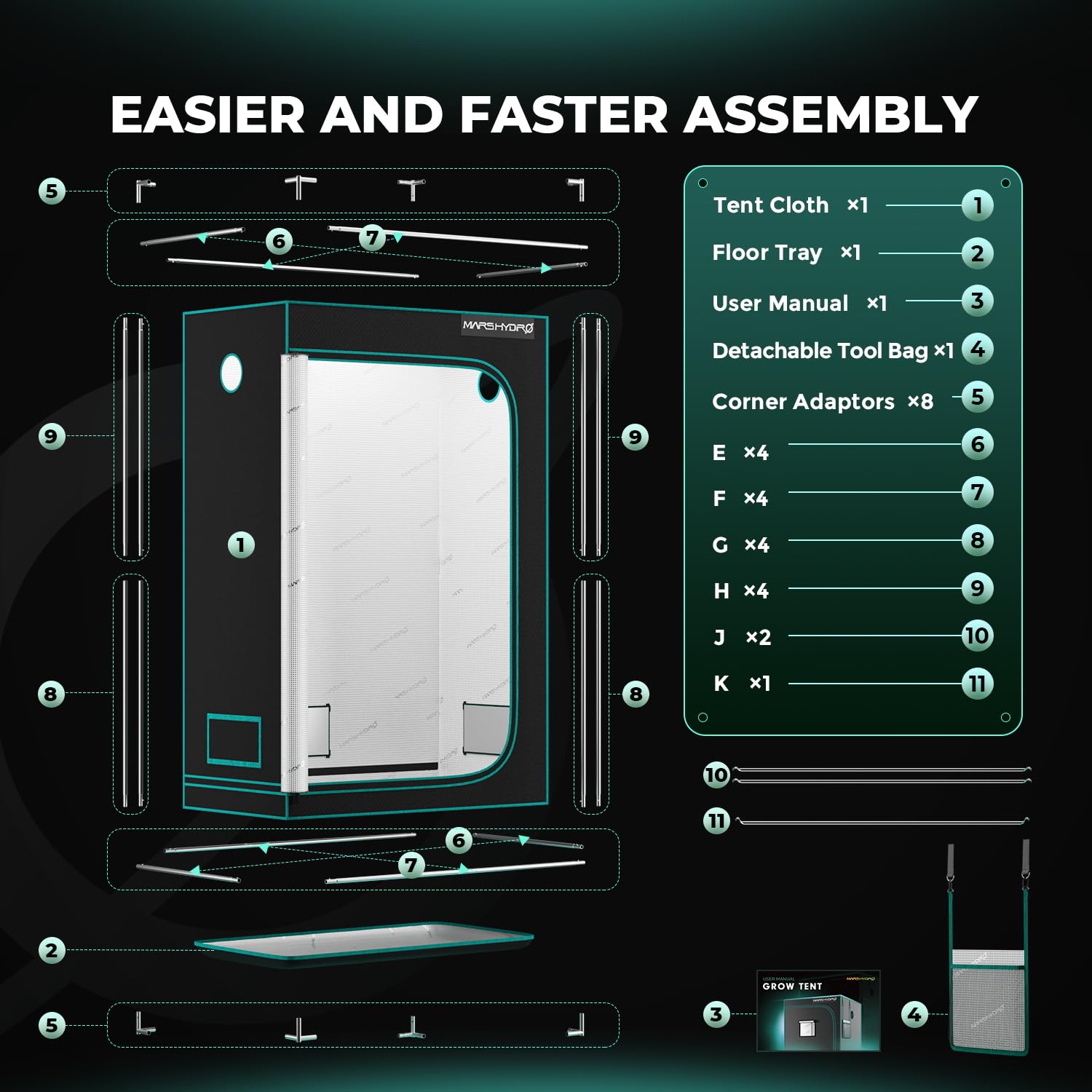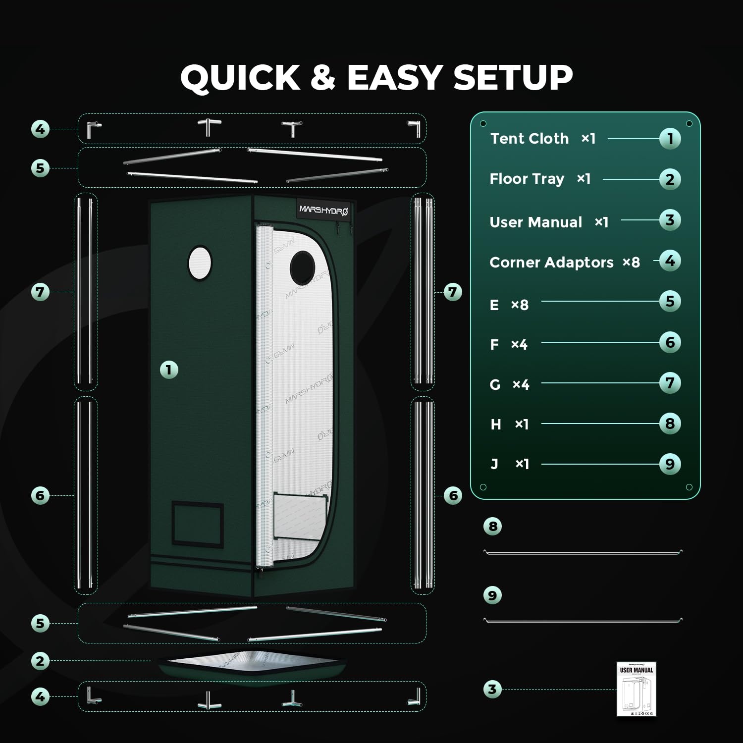 - STURDY METAL STRUKTUR UND EINFACHER SETUP: Gefertigt mit stabilen Metallstangen, Eckadaptern und oberen Stangen, ist dieses wachsende Zelt für seine Haltbarkeit überlegen, weder rostend noch farbabfallend. Die dicken und festen Stahlstangen widerstehen mehr Gewicht als andere kleine Anbauzelte. Es ist einfach mit Pop-Druckknöpfen und Löchern zusammenzubauen, schnell Ihr Anbau-Setup für hydroponischen Anbau und Gartenarbeit in wenigen Minuten aufzubauen.