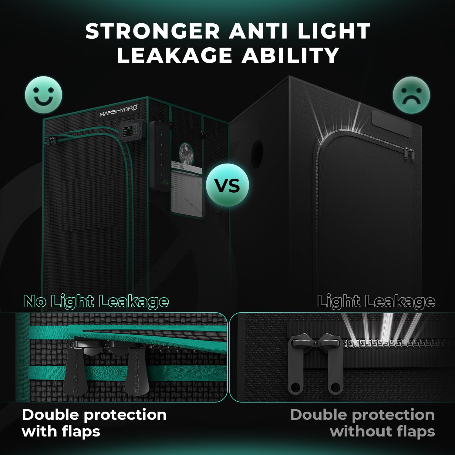 - VERBESSERTE ZIPPERFLASCHE FÜR PERFEKTE LICHTSCHLOSSUNG: MARS HYDRO Growzelt innenraum ist hochreflektierend und dichtes Diamantmylar. Ein exklusives Schattentuch ist auf der Naht zwischen Reißverschluss und Leinwand ausgestattet, um Nadellochlecks zu vermeiden. Die 1680D Leinwand ist doppelt genäht, reißfest für perfekte Lichtsperre und hält 100% Lichtstrahlen innen.