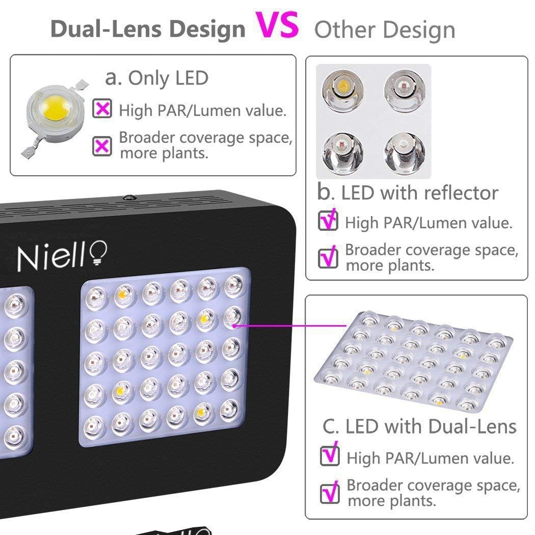 - 𝐄𝐧𝐞𝐫𝐠𝐢𝐞𝐞𝐟𝐟𝐢𝐳𝐢𝐞𝐧𝐭𝐞: our Pflanzenlampe verbraucht nur 100 Watt Wirkleistung , und niello grow led light ersetzen das herkömmliche 1000W. Das led grow light ist mit 222 LEDs , um die maximale Lichtleistung zu gewährleisten.Diese LED grow Lampe erhöht die Ausbeute und senkt gleichzeitig die Kosten