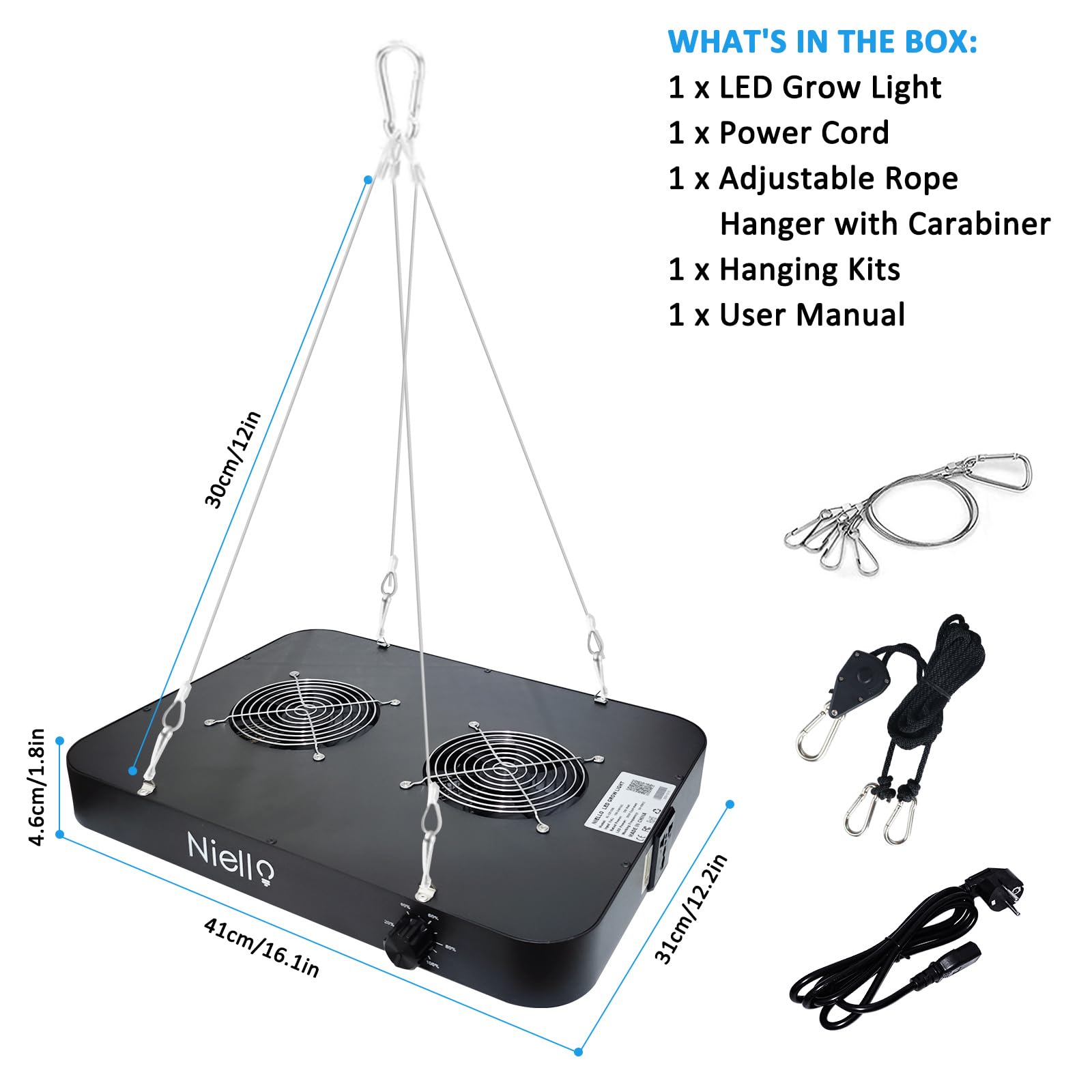 Niello QB1000 LED Pflanzenlampe with dimmable, LED Grow Lampe Vollspektrum, Hohem PPFD und IR Grow Light Wachstumslampe für 2x2ft Innen Wachsen Zelt Samen Knospe Pflanze Gemüse und Blume