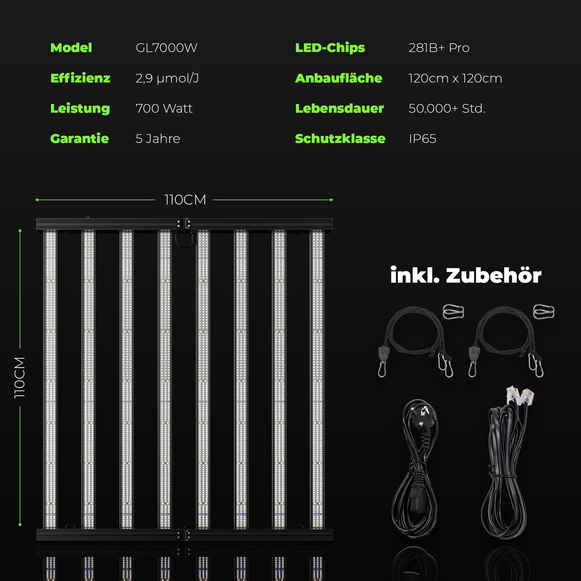 ProLine GL1000W Vollspektrum LED Grow Light Pflanzenlampe mit LED Technologie Pflanzenlicht dimmbar mit 5 Jahre Herstellergarantie
