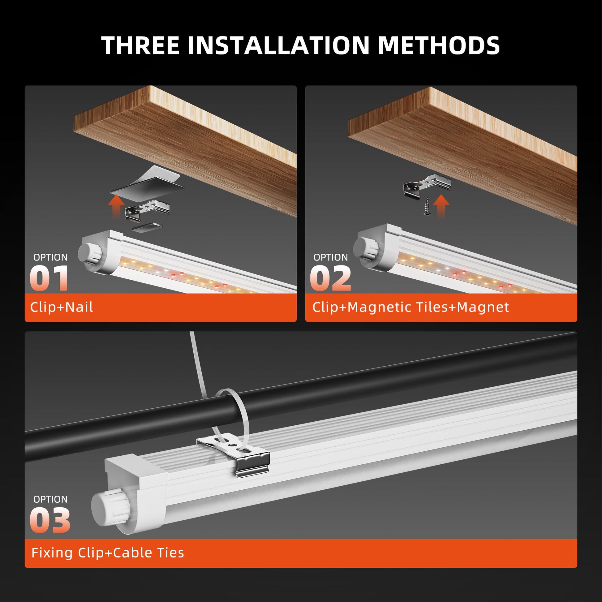 - Vielseitige und einfache Installation: Ob an einem Regal, an der Wand oder an der Decke, diese Pflanzenlampe bietet flexible Montagemöglichkeiten mit Magneten, Schrauben, Clips und Kabelbindern, die im Lieferumfang enthalten sind. Die Installation dauert nur wenige Minuten – keine professionelle Installation erforderlich