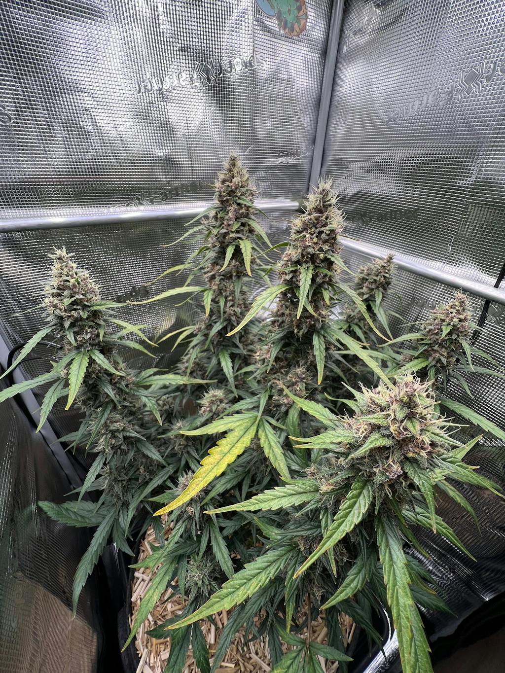 Aussehen: Erwarte, dass die Friezas Laser Pflanzen eine Höhe von 80-130 cm erreichen. Im Innenbereich kannst du bis zu 550 g/m² und im Außenbereich bis zu 300 g/Pflanze ernten. Diese Sorte entwickelt mehrere dicke Seitenäste mit vielen Blütenständen und langen Fächerblättern, die einen wunderschönen Kontrast zwischen dem hellgrünen Stamm, den dunkelvioletten Blüten und den dunkleren grünen und violetten Zuckerlättern bilden, die um die Blüten herum wachsen. Eine optische Schönheit mit großen Internodienabständen – perfekt für Züchter, die bunte autoflowering Sorten suchen.