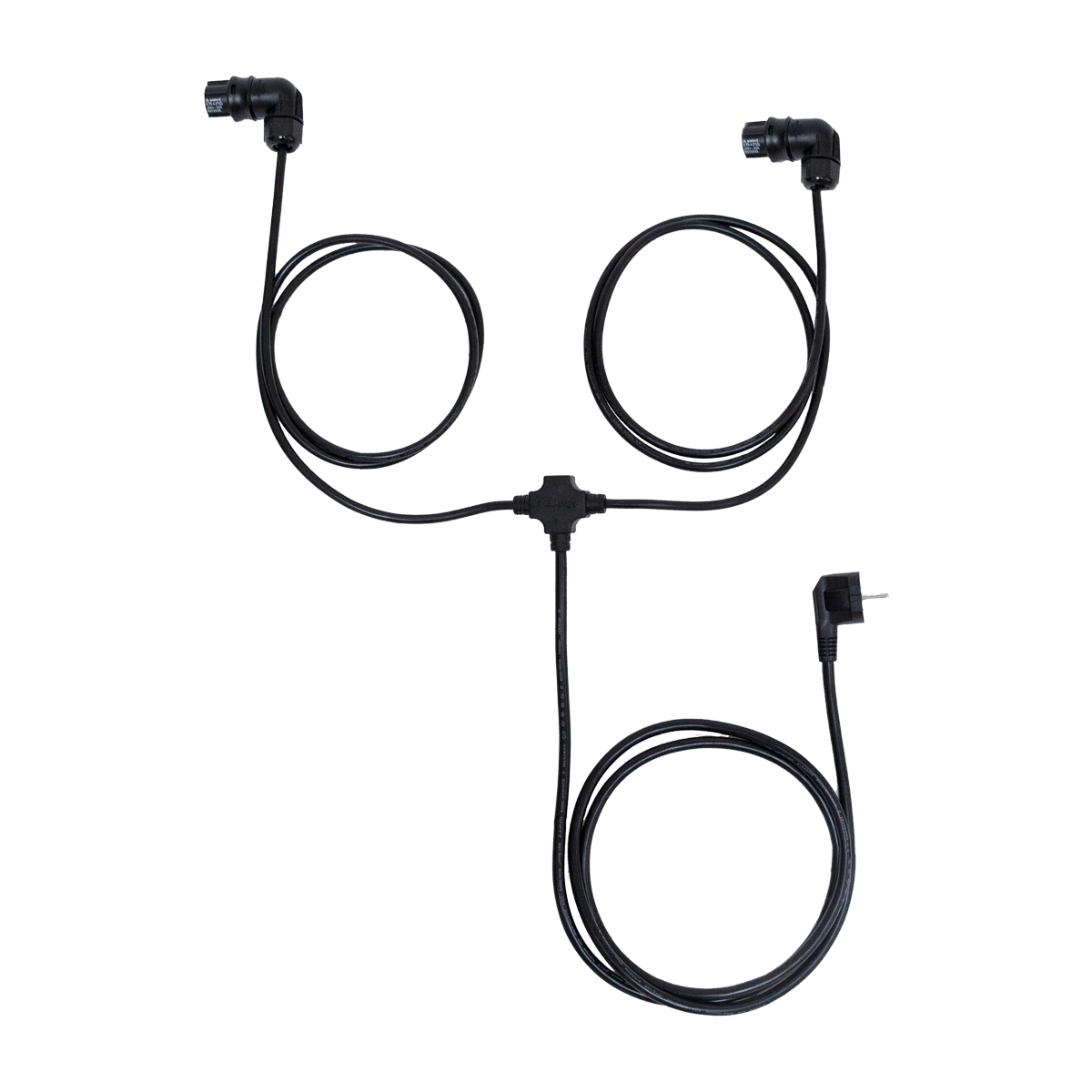 - 1x Y-Netzkabel (Gesamtlänge 3,30m, Länge Stecker zu Splitter 1,80m, Länge Splitter zu Leuchtenstecker 1,50m)